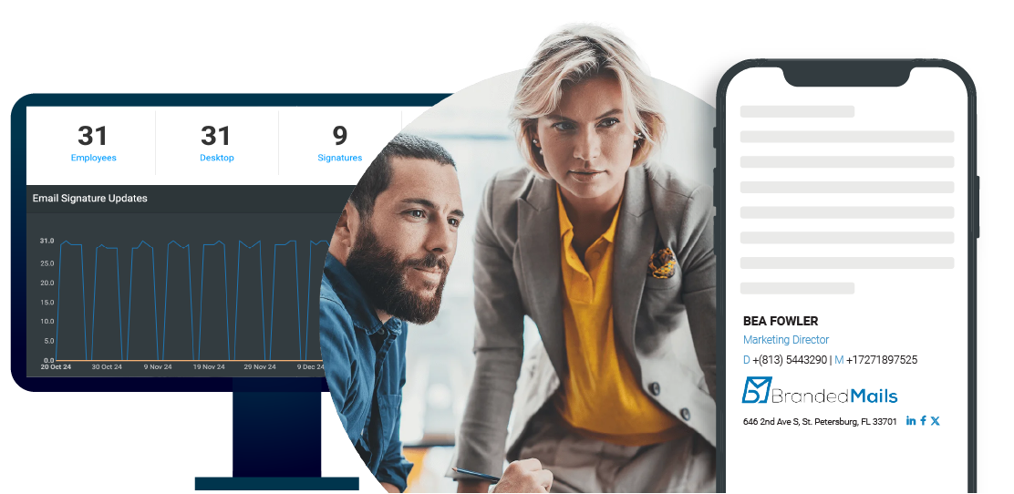 Fits your business brand and looks professional. Email clients and mobile devices compatible everywhere. Email signature solution across all devices.
